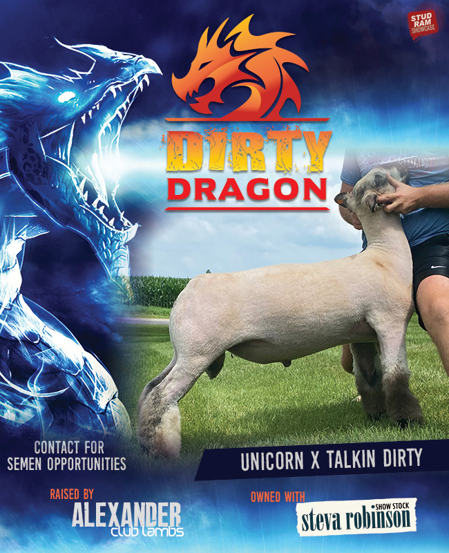 We had big hopes when we bred to Unicorn last year, but DIRTY DRAGON exceeded our expectations. He's been special from the start and is the one we felt was the buck we needed between our place and Scott's. Stout, fuzzy legged, hampy as can be, awesome in his body design and rib shape, killer from the side with that added extention and backed by an elite ewe - DIRTY DRAGON is the elite Unicorn son we were hunting!